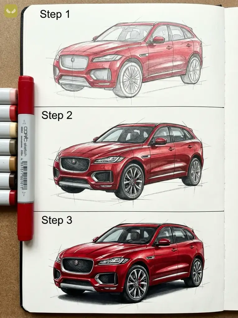 This guide is both an art tutorial and a design deep dive. You’ll learn how to draw10 legendary Jaguar models, understand what makes each visually iconic, and discover how to translate real-world automotive design into compelling sketches—whether you’re working in pencil, pen, Procreate, or Illustrator. The process is broken down into easy, step-by-step instructions, making it accessible for both beginners and experienced artists.
