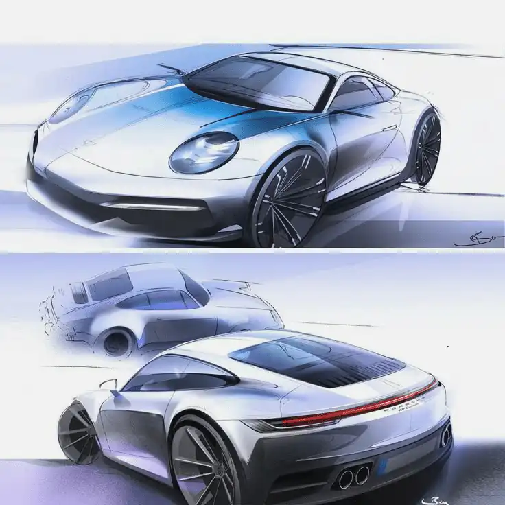 - Dynamic sketching with quick, expressive lines can help capture the sleek lines and flowing forms of Porsche design.