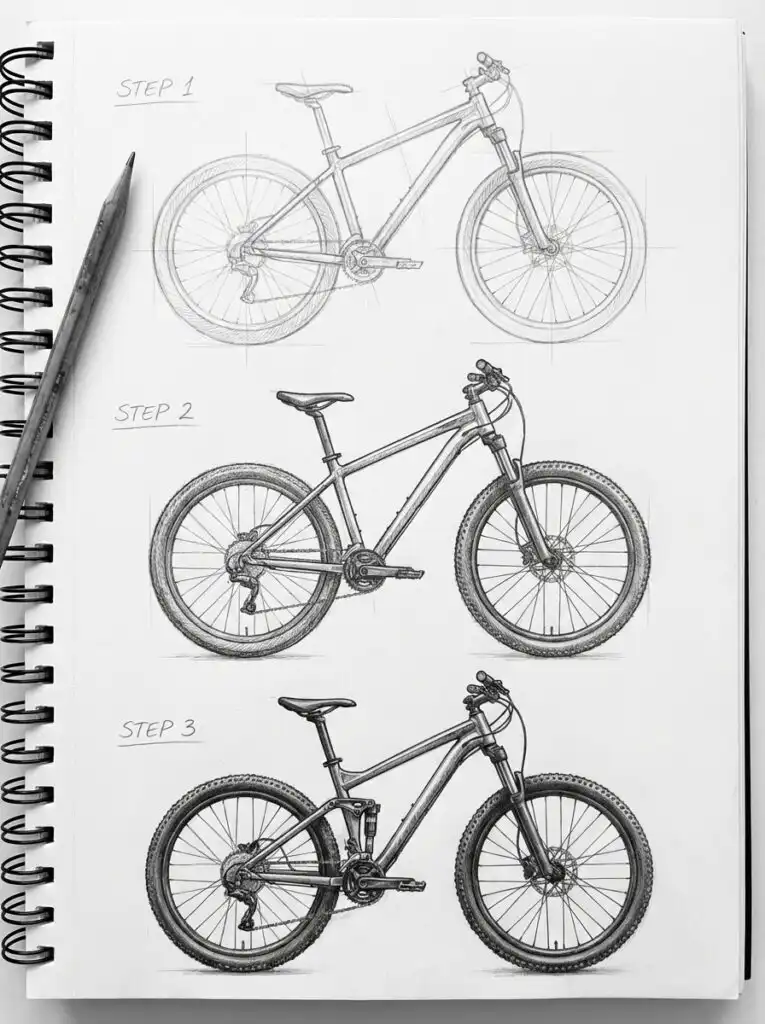 In this guide, I am going to walk you through several beginner-friendly ways to draw a mountain bike that actually looks like, well, a mountain bike. Think of this as us sitting together at the table with a sketchbook and a pencil, just figuring it out step by step. No art degree required. No perfect lines needed.
