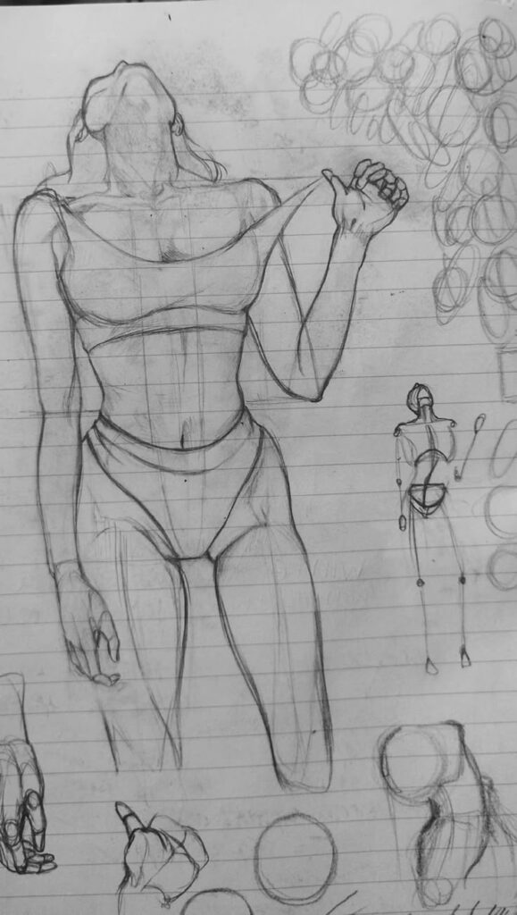 After the gesture drawing, focus on the torso. This part of the body is central to the figure’s structure.
