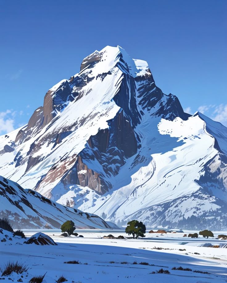 When creating a mountain landscape, it’s essential to convey the vastness and majesty inherent in these scenes. Perspective techniques help illustrate the scale, with distant peaks appearing smaller and less detailed than those in the foreground.