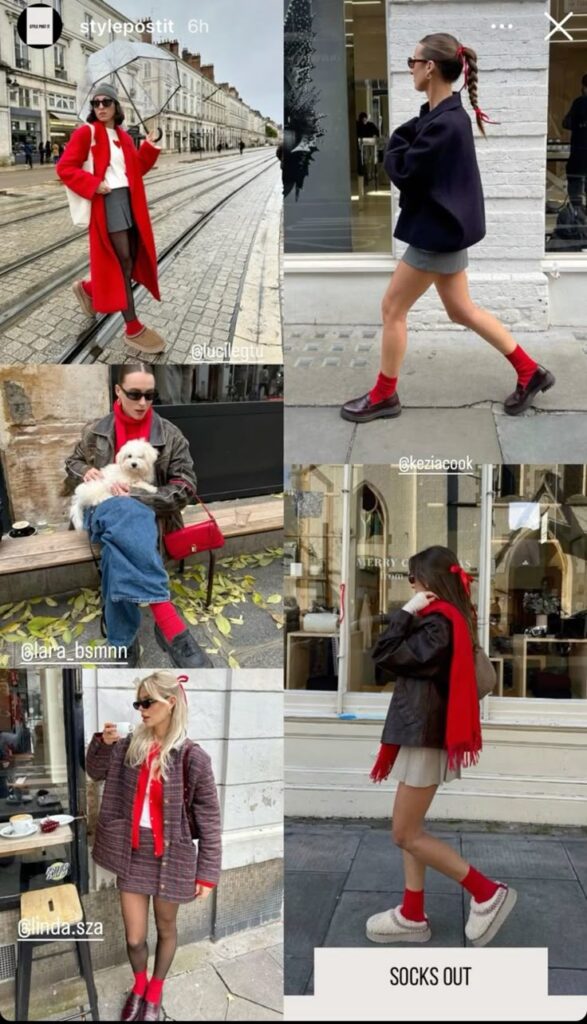 Red accessories, especially bags and socks, are perfect for adding a pop of color. They can turn a basic outfit into something stylish and fun, whether it’s for everyday wear or a special occasion. Pairing them with neutral or matching tones helps create a clean and pulled-together appearance that feels easy and chic.