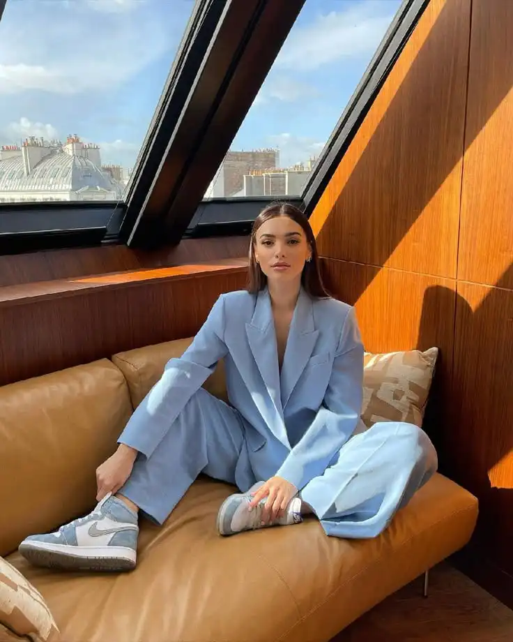 For work, a monochromatic outfit should look polished and neat. Choosing neutral or classic colors like navy, gray, black, or beige is best. A tailored blazer paired with matching trousers or a skirt works well.