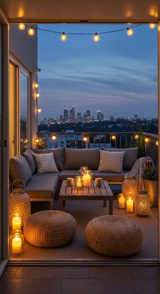Decorations give a balcony character. String lights create a warm glow and make evenings feel special. Hanging lightweight art or weatherproof designs adds personality without clutter.