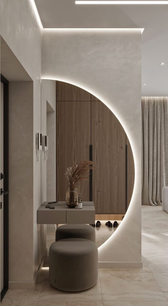Decorative accents add personality and interest to entryways and hallways. Using reflective surfaces and meaningful artwork can make these spaces both welcoming and visually appealing.