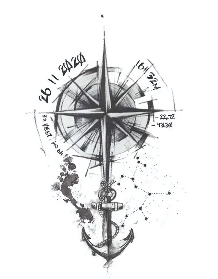 The anchor with compass tattoo is a classic maritime design that has remained popular among men for generations. This tattoo combines two powerful seafaring symbols that each carry their own meaning.