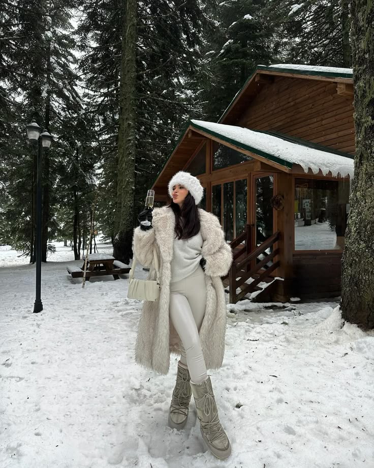 • Neutrals: Creams, off-whites, greys, and camels create a soft, elegant look that complements snowy backdrops beautifully. They also allow for rich textures to really pop.