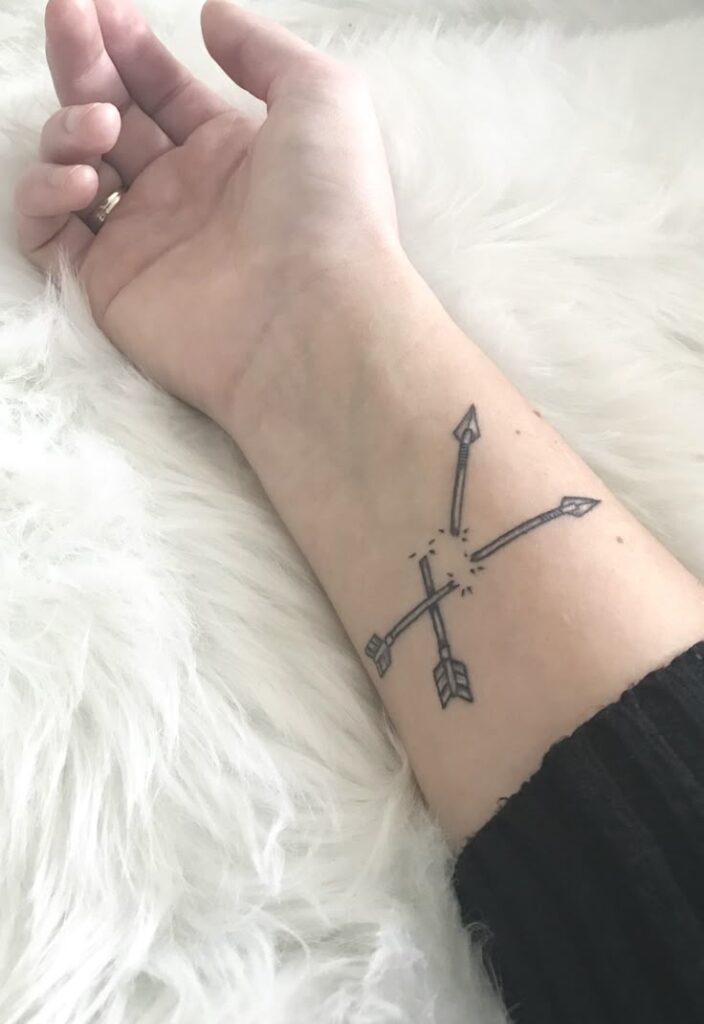 Crossed arrows are a classic tattoo design that represents friendship, alliance, or unity. In many traditions, two arrows crossing each other signal peace between opposing parties or the coming together of different paths.