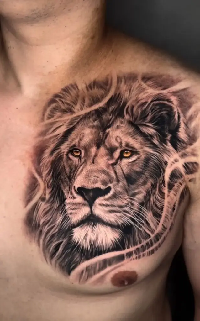Lion chest tattoos are bold and striking. They often cover a significant area, making a strong impression. This design allows for intricate detail, showing the lion’s mane and facial features dramatically.