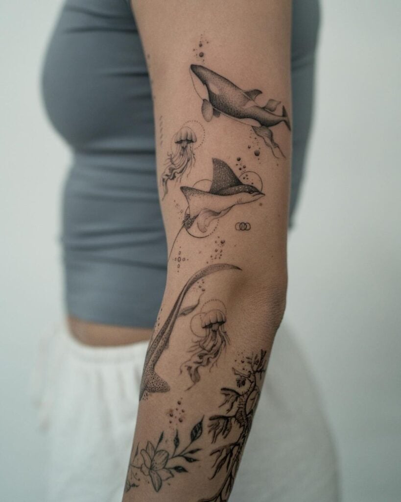 Practical advice: If there’s any chance you’ll want more ocean tattoo ideas inked later, place your first piece toward the wrist or elbow. Leave the prime mid-forearm real estate open.